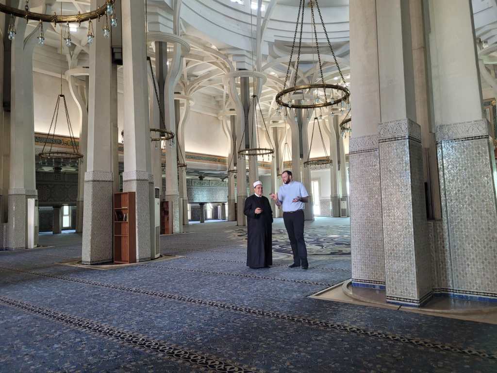 On Friday, 20 May 2022, the Methodist Ecumenical Office Rome organized a tour of the Grand Mosque in Rome which is the largest mosque in Europe. The mosque can accommodate 2,500 worshippers and has a vibrant multicultural community. The Rev. Matthew A. Laferty, director of the Methodist Ecumenical Office Rome, led a delegation from Churches Together in Rome, an ecumenical association of Protestant and Catholic foreign language communities in Rome, on the tour. Thank you Imam Nader for the warm welcome and extensive tour.