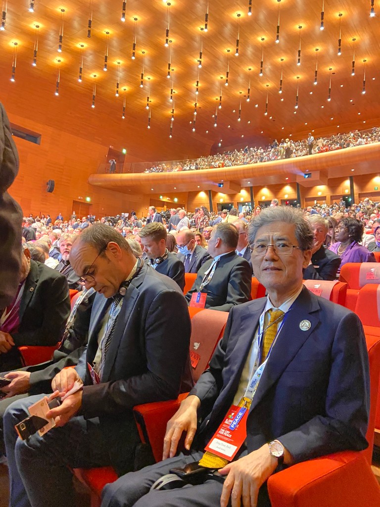 Several world Methodist leaders attended the Sant’Egidio International Meeting of Peace in Rome from 23-25 October, under the theme ‘The Cry of Peace’. The Rev Prof Jong Chun Park, president of the World Methodist Council, Ms. Gillian Kingston, vice president of the World Methodist Council, and the Rev Matthew A. Laferty, director of the Methodist Ecumenical Office Rome, were members of the Methodist delegation. During the opening plenary on Sunday, 23 October, Mr. Sergio Matterella, president of the Republic of Italy, and Mr. Emmanuel Macron, president of the Republic of France, addressed the audience.