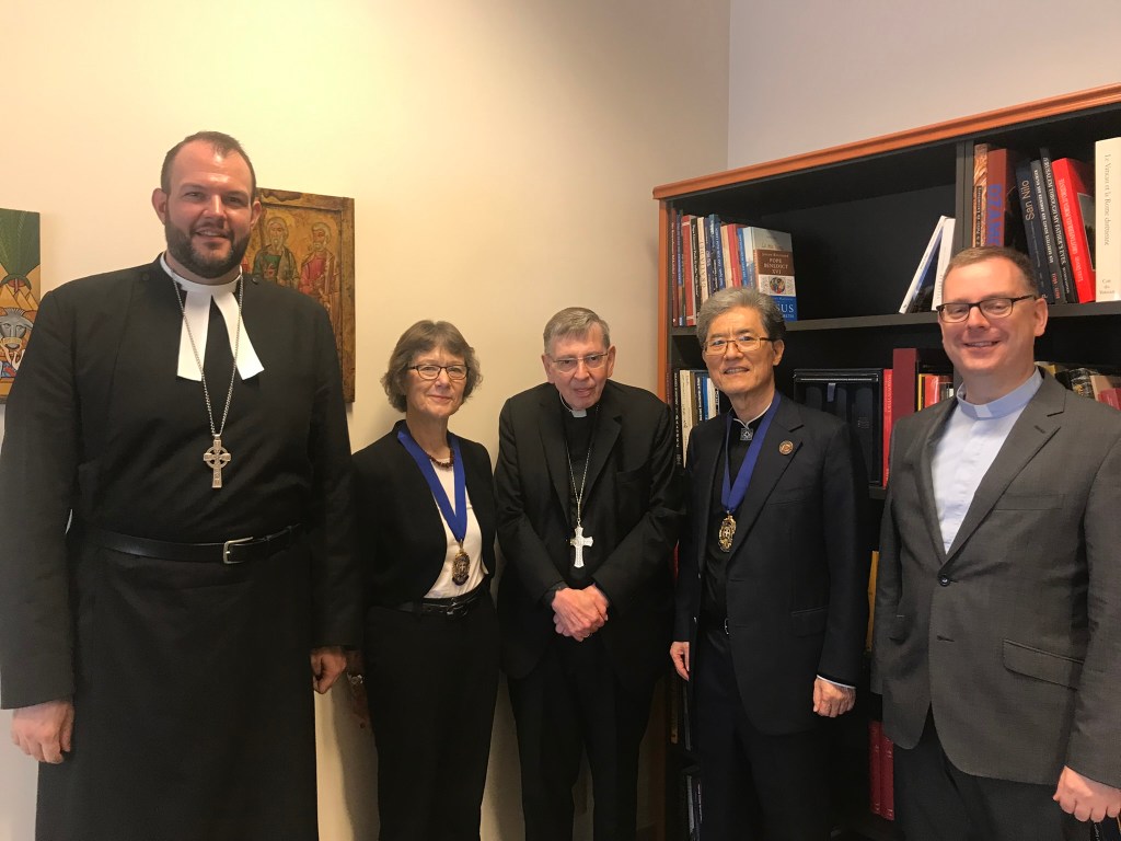 Later on Thursday, 20 October, Prof Park and Ms. Kingston also attended a special symposium, co-hosted by the Methodist Ecumenical Office Rome and Centro Pro Unione, on the late Methodist theologian Revd Prof Geoffrey Wainwright. The event, titled “The Heritage of Geoffrey Wainwright as Liturgist, Theologian, and Ecumenist”, highlighted the various aspects of Prof Wainwright’s academic work and was attended by over 40 people. There were three main speakers for the event – Rev Prof Bryan Spinks (Yale University), Revd Dr Richard Clutterbuck (Wesley House Cambridge), and Rev Dr William Rusch (New York Theological Seminary). Following the main lectures, there was a special panel of Prof Wainwright’s former colleagues and friends who spoke about personal aspects of Prof Wainwright’s life; the panel was comprised of Rev Prof Bernhard Eckerstorfer OSB (Pontifical University of Sant’Anselmo), Ms. Gillian Kingston (World Methodist Council), and Archbishop Don Bolen (Catholic Diocese of Regina). Bishop Brian Farrell, secretary at the Dicastery for Promoting Christian Unity, attended the symposium and greeted Prof Park and Ms. Kingston after the program. Along with Rev Matthew A. Laferty, director of the Methodist Ecumenical Office Rome, Rev Prof James Puglisi SA, director of Centro Pro Unione, and Rev Martin Browne OSB, the new official for Methodist relations at the Vatican Dicastery for Promoting Christian Unity, Prof Park and Ms. Kingston joined the event speakers for dinner afterwards.