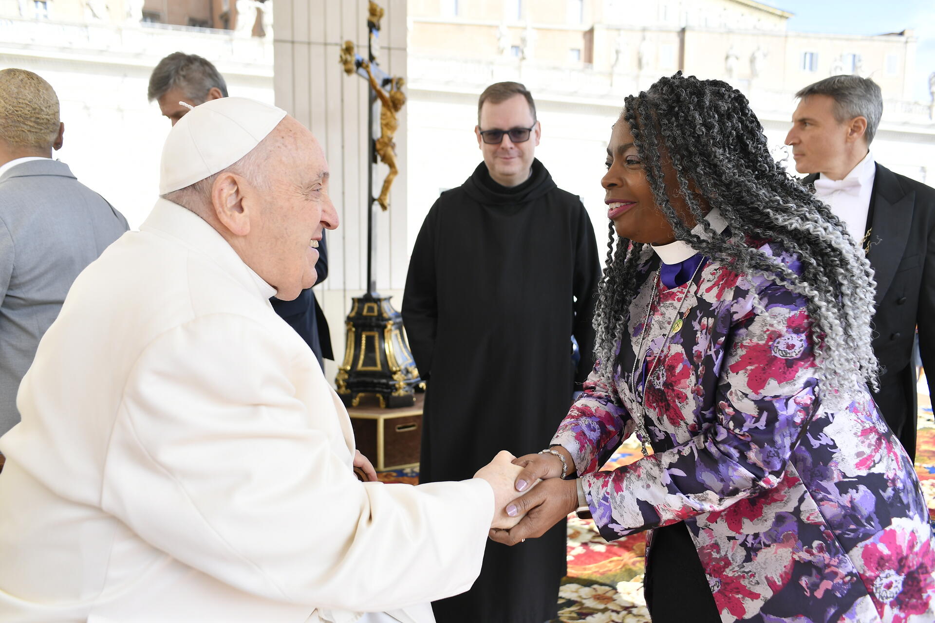 Pope Francis met a delegation of 10 bishops from the United States from three different Methodist churches on Wednesday, 6 March 2024, following the weekly General Audience. Each bishop was greeted individually by Pope Francis and had a few moments to speak to him.