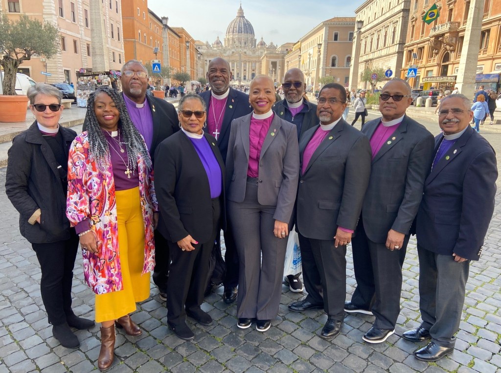 A group of 10 bishops from three different Methodist churches in the United States embarked on a study pilgrimage in Rome, Italy, from 5-8 March 2024. The bishops were drawn from the African Methodist Episcopal Church, the Christian Methodist Episcopal Church, and The United Methodist Church; all three churches are member churches of the World Methodist Council, the international Christian communion of Methodist, Wesleyan, and Uniting churches. The three churches underwent separation during the 19th century due to the sin of slavery and racism. Since 2012, the churches, along with 3 other Methodist churches, are in a special full communion relationship.