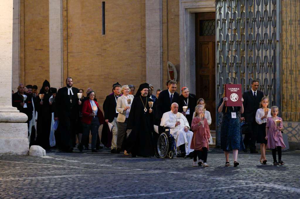 Rev. Laferty (left) processing into the Square of Roman Protomartyrs with Pope Francis and other ecumenical leaders. Photo by Vatican Media.