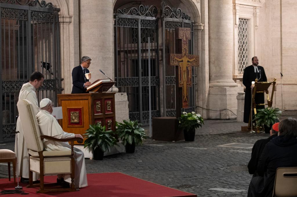 Rev. Prof. Jong Chun Park leads prayers during the ecumenical prayer vigil. Photo by Vatican Media.